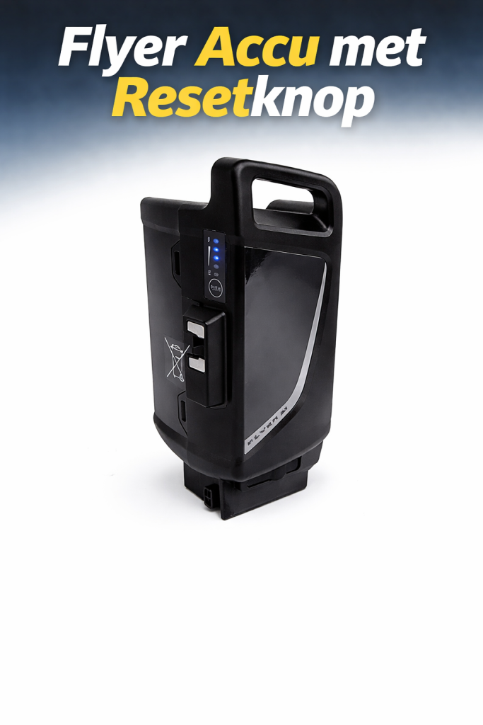 Niet iedere Flyer accu heeft standaard een resetknop. In dat geval kan deze worden ingebouwd tijdens een reparatie of controle.